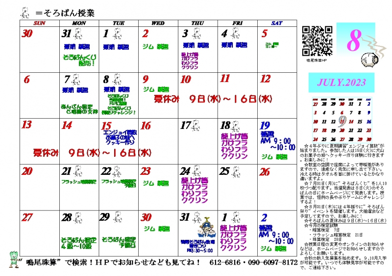 8月31日(木)は4年振りに"そろばん祭り"を予定していますので、お楽しみに!