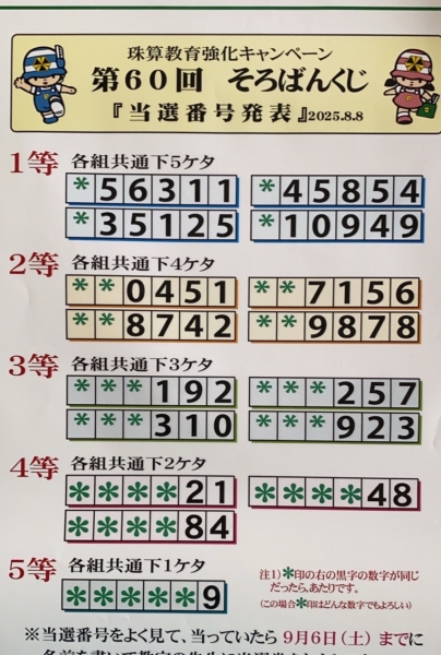 ソロバンくじ 当選発表★