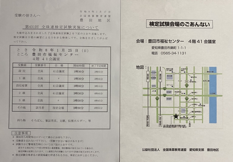 第431回全国珠算連盟検定試験