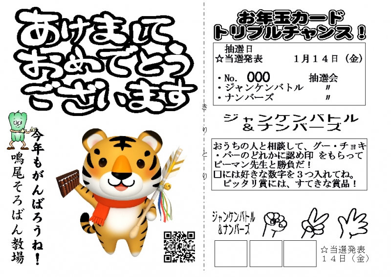 当日は、お年玉カードを配布して、14日(金)が抽選発表となります。お楽しみに!