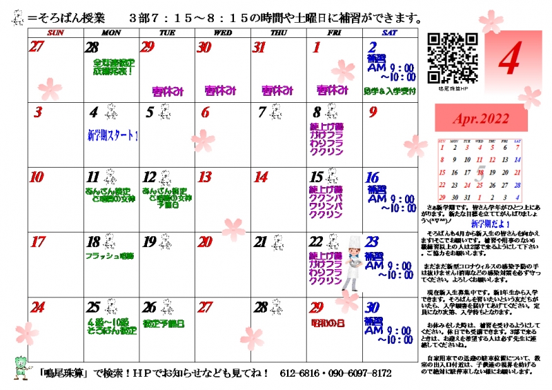 今月も毎週土曜日の補習授業で見学&体験が可能です。
