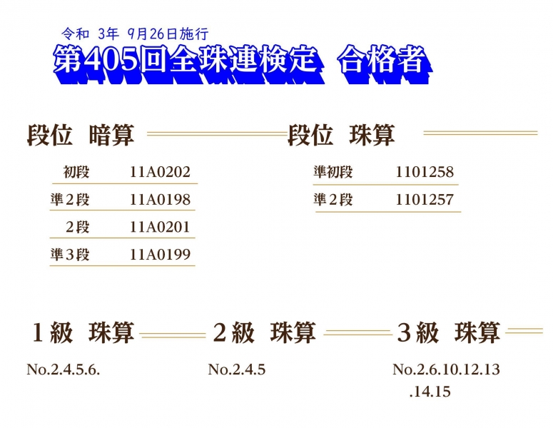 第405回全珠連検定試験合格者(3級以上)