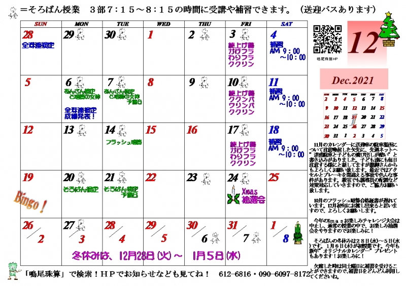 そろばんの冬休みは