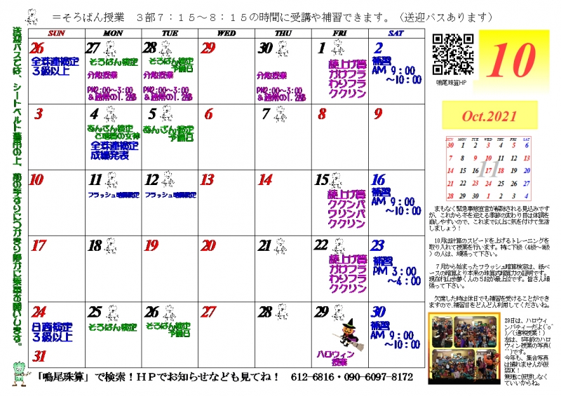 10月の補習授業に変更があります