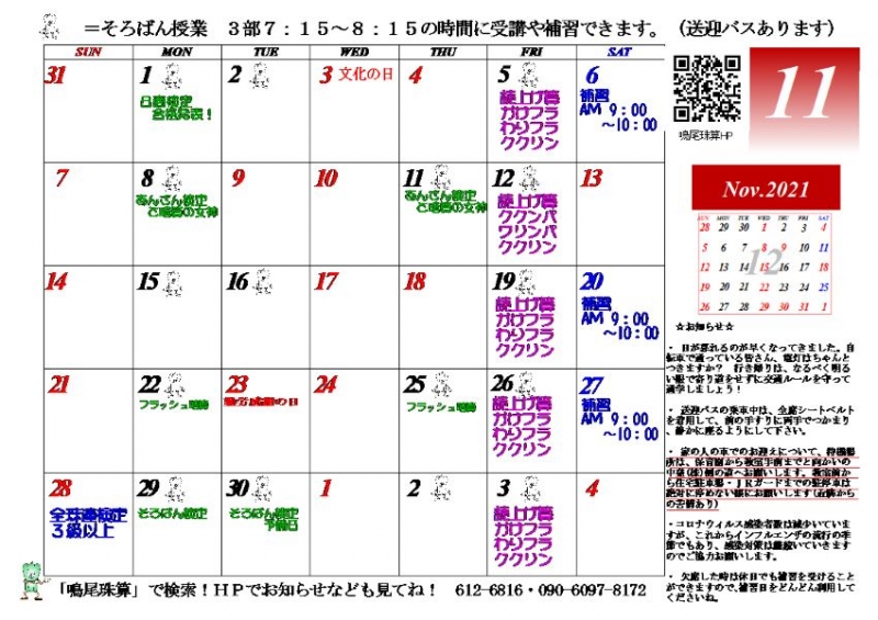 11月のカレンダーを掲載しました。