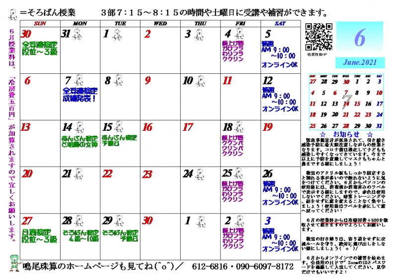 6月カレンダーを掲載しました。