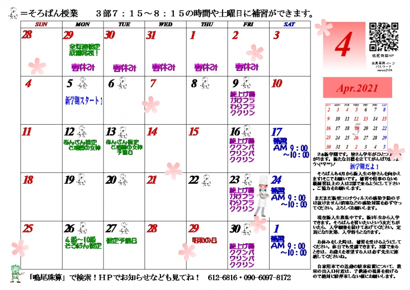 4月カレンダーを掲載しました。