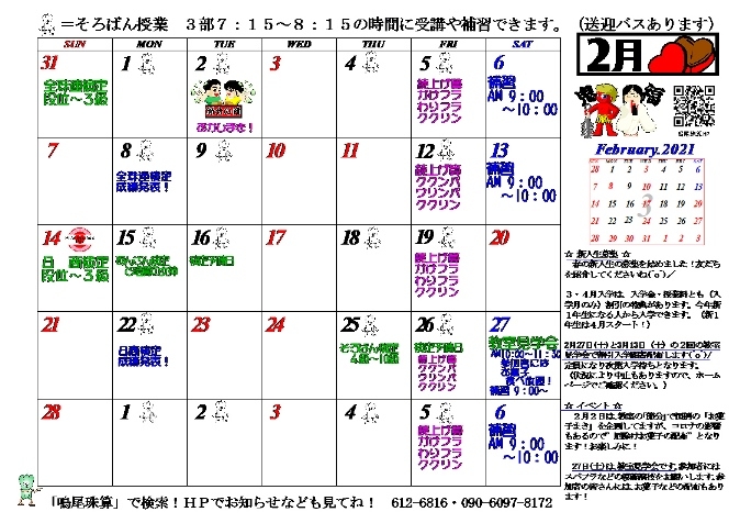 2月カレンダーを掲載しました。
