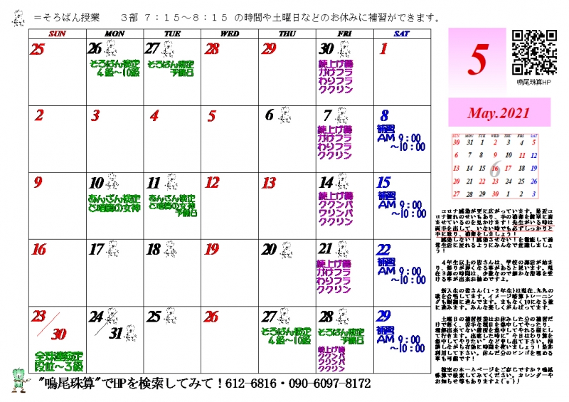 5月カレンダーを掲載しました。
