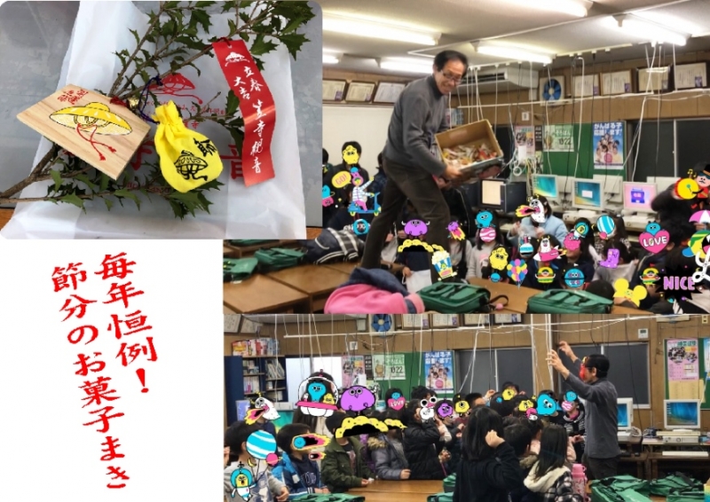 教室の節分(お菓子まき)