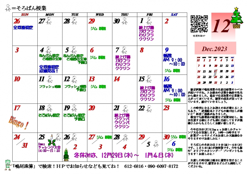 今月は25日(月)にXmasチャレンジ大会を開催します。