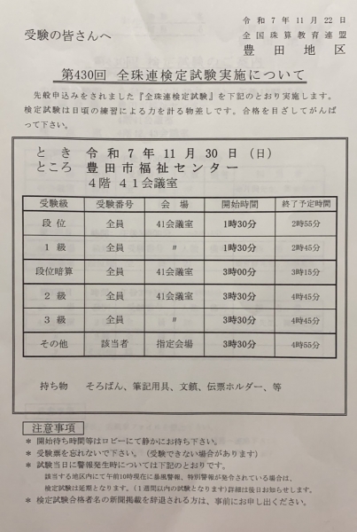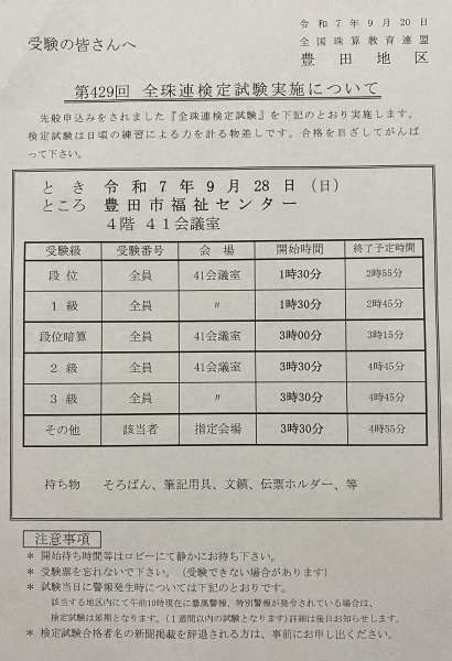 第432回 全国珠算連盟検定試験